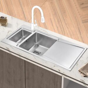 Easy to Clean JASSFERRY kitchen sinks are made of high-quality SUS304 stainless steel with a matt finish. Durable and corrosion-resistant. It can be cleaned with a soft cloth or 3M sponge scouring pad. 1.5 Bowl Design This 1.5 bowl kitchen sink is convenient for you to wash fruits and vegetables separately. The smaller bowl can also provide space to dry dishes. Right Drainboard This sink is assembled with the drainboard to the right. A large draining area will come in very handy not only when placing dishes to dry but also as an extra place for cutting vegetables or fruits Deep Bowl This sinks features a deep bowl, which prevents splashing and fits your biggest pots and stacks of dishes