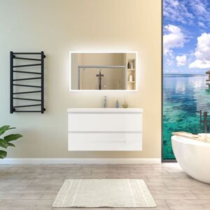 SKY bathroom furniture set With 2 Soft-Close Drawers,ceramic basin+LED bathroom anti-fog mirror with 3 Lighting Modes Mirror Features: Brand: SKY Size : 100x60cm Certificate of quality : UKCA // IP44 Material : glass Switching method : touch/wall switch Installation: Horizontal/vertical Function :Anti-fog﹜Dimmable 3 colours﹜Memory About Furniture Item ∴▽ Premium MDF Board ▼ The vanity is constructed with high-quality MDF board MDF is known for its strength,stability,and smooth finish It provides a solid foundation for the vanity,ensuring it can withstand the weight of your daily items ∴▽ Effortless Cleaning ▼ Cleaning the bathroom is no longer a chore with our easy to clean design The ceramic basin is crafted with a special glaze that resists stains and dirt A simple wipe with a damp cloth is all it takes to keep it looking spotless ∴ ▽ Anti - Splash Design ▼ Our ceramic basin comes with a deep design anti-flow design allows you to fill it with enough water for a comfortable wash