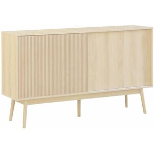 The Linear collection brings the Scandinavian charm into your interior. The pieces feature flared legs in solid pine, evoking the trendy Nordic decoration. The light wood color of the furniture and their grooved drawers bring an authentic touch. Bedside table, console, bookshelf, buffet, TV stand... This collection offers a selection of elegant and streamlined furniture to best furnish your interior. A sleek and Scandinavian buffet There's nothing better than the Linear storage buffet to bring a Scandinavian and sleek touch to your interior. With its wood-like structure and grooved wood drawer, its lines are simple and minimalist. Sturdy, this buffet is mounted on 5 solid pine compass legs, including an adjustable central leg! It all recalls Nordic design. Let yourself be tempted by this piece of furniture, and your room will only become more beautiful! A practical and functional piece of furniture This buffet is equipped with 2 lovely sliding doors that combine aesthetics and