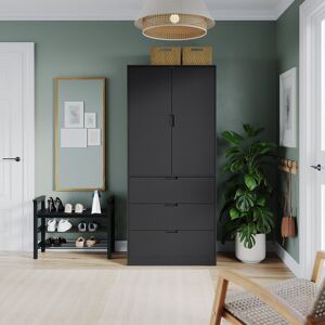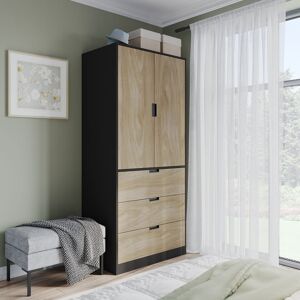 The Riga 2 door 3 drawer wardrobe is a stylish and practical storage solution for any bedroom. With its sleek design and versatile color options, it's easy to create a personalized look that complements your existing decor. Choose from a range of colors, including classic black, sophisticated grey, warm oak, and timeless white. Mix and match carcasses and drawers to create a unique combination that suits your style. The Riga wardrobe offers ample storage space with its two spacious hanging doors and three convenient drawers. The hanging rail provides plenty of room for your clothes, while the drawers are perfect for storing folded items like sweaters, t-shirts, and accessories. The wardrobe's dimensions are H180 x W80 x D50 cm, making it ideal for smaller bedrooms or as part of a larger wardrobe system. Assembly is straightforward with the included instructions and parts. Whether you're a seasoned DIYer or a first-time assembler, you'll be able to put together your Riga wardrobe in no time. The wardrobe is designed for durability and longevity, ensuring it will provide years of reliable storage. Upgrade your bedroom storage with the Riga 2 door 3 drawer wardrobe. Its sleek design, versatile color options, and ample storage space make it a practical and stylish choice. 17 Stories Finish: Oak/Black