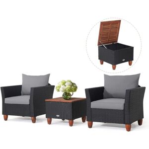 Elevate your outdoor living experience with this premium 3-piece aluminum sofa set. The whole set is made of built-to-last material for prolonged outdoor using time. The robust aluminum structure offers strong support, while the all-weather WPC tabletop ensures year-round elegance. Comfort is key, and with the thickened cushions, leisure has never felt more luxurious. The flexible combination of modular pieces allows for custom arrangements, perfect for any occasion. Whether its a pool party or quiet time on the porch, this sets versatility makes it ideal for a myriad of spaces. Costway 3 Pieces Patio Furniture Set Aluminum Frame Outdoor Table Chair Set w/Soft Cushions in Grey