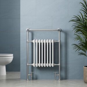 GENERAL DESCRIPTION This traditionally styled heated towel rail from Galiflo will keep your bathroom warm and cozy. It features a stylish design that adds a touch of elegance to any bathroom decor. What's Included? Galiflo 952 x 659mm traditional heated towel rail - Chrome and White Towel Rail Features & Benefits: Stylish white and chrome finish Classic design suitable for traditional bathrooms High-quality stainless steel construction Crisp white ceramic columns Provides effective heating Suitable for floorstanding installation Slim and compact design Heat Output - BTU (Delta T50) - 2420 Radiator valves are NOT included 10 year guarantee TECHNICAL SPECIFICATIONS Height: 952mm Width: 659mm Depth: 235mm BTU Output (Delta T50): 2420 Watts (Delta T50): 709 Tube centres: 584mm Weight: 16.20 kg Pressure tested to 13 bar