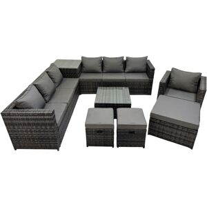This patio corner sofa set can be used both indoors and Outdoor, with high quality PE rattan and durable galvanized steel construction for sturdiness and long lasting. Outdoor garden furniture can also be placed on the patio or balcony, The design of this rattan furniture is a perfect blend of country chic and modern minimalism, adding an elegant touch to your house. Set dimensions: 1 x 3 Seater sofa with two arm : 170L x 69W x 79H cm; 1 x 3 Seater sofa with single arm: 160L x 69W x 79H cm; 1 x Rectangular Dining Table: 110L x 70W x 70H cm; 1 x Big Footstool :65L x 65W x 34H cm; 2 x Small fully assembled footstools 40L x 40W x 34H cm; 1 x Chair: 74W x 69D x 79H cm; Dark grey mixed rattan with dark grey fabric .Color may vary due to light or monitor .we are unable to return the item due to this problem .Please consult before purchase if you have requirment on color saturation. Items Comes Flat Packed And Easy to Assemble, Sturdy Galvanized Steel Tube Metal Frames With Powder Coating To Prevent Rust. Ergonomic High Back And Declining Design For Extra Comfort. Flat PE Rattan Completely Made By Hand, 5mm Thick transparent Tempered Glass With Sucker On Surface To Prevent Sliding8 cm Thick Seat Cushion With Soft Back Cushion provide You with More Comfort. Low Maintenance ,Removable Cushion Cover And Easy To Move Different Place. Pls Keep the Cushion Indoor Or Put on With Rain Cover When Not In Use .Put on Furniture With Rain Cover If Not Use For Long Time . Fimous 10 Seater Garden Outdoor Rattan Furniture Set with 3 Footstools in Dark Grey