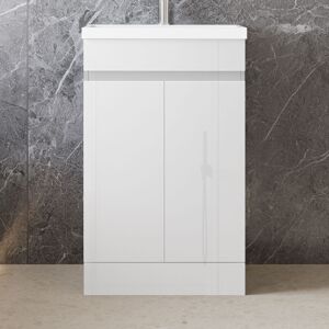 600*390mm High Gloss White MDF Vanity Unit, Floorstanding, Detachable, Soft Close, Dual-door + 610*395mm White Thick Ceramic Basin In between busy lives, give yourself a quiet and elegant private space, starting with upgrading your bathroom. We have introduced a new series of high-end bathroom cabinets with selected ceramic washbasins to add an extraordinary touch of taste and comfort to your home life. Product features: Our Vanity unit and basin are manufactured to high standards by experienced and renowned manufacturers, and each component is strictly selected and inspected to ensure the high quality of the product, which will be your reliable choice. Spacious storage space for all your necessities ---- This vanity can provide you with 2 doors with enough space to securely store any bathroom necessities you need, keep you from worrying about too much clutter in the bathroom, keep everything in good condition and make a cluttered bathroom neat. Soft-closing doors--No more harsh sound
