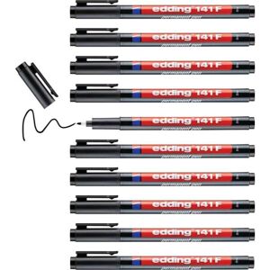 Edding: 141F-001 Fine OHP Permanent Marker Black (Pack-10) Fine 0.6mm Nib, High Transparency Ink, Permanently mark Plastic Transparencies, eg. Overhead Projector Transparencies, Will also mark Glass, Plastics eg. on the edge of slides Very popular for writing on Plant Labels Recommended for use with the Pen Holder for Scafftag. Single Black Pen. MPN: 4-141001 EAN: 4004764066681 141F-001 Fine OHP Permanent Marker Black (Pack-10) Attributes: Ink Colour: Black Line Width: 0.6mm MFR Part No.: 141F-001 Pen Type: permanent Refill Type: Non-Refillable Retractable: Non Retractable Tip Size: Fine