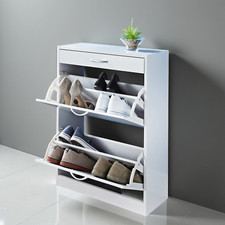 This wooden shoe cabinet has 2 storage compartments and a simple, yet stylish design. You will no longer be annoyed by shoes cluttering your floor. Each large compartment has a middle partition to keep things organised. Up to 12 pairs of shoes can be stored dust-free. Made of high quality wood, our shoe cabinet is easy to assemble. Colour: White Material: Engineered wood + plastic + aluminium alloy Total size: 63.5 x 24 x 81 cm (L x W x H) Compartment height: 34.5 cm With 2 large storage compartments Easy to assemble WARNING: In order to prevent overturning, this product must be used with the wall attachment device provided SKU: 241242 EU responsible party Haba Trading B.V. Mary Kingsleystraat 1 5928SK Venlo The Netherlands Compliance-safety@vidaxl.com