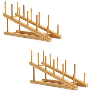 [High-quality Material]: Made of natural and environmentally friendly bamboo. The has a texture, increased color and lustre, not easy to crack, and has a longer service life. [2 PCS Wooden Dish Rack]: Small size, , sturdy and , suitable for compact kitchen, reasonable use of small counter space. [Easy to Clean]: You can wipe it with a damp cloth and then air dry. Avoid leaving our wooden dish rack in the water or long-term exposure to strong sunlight. [ Multiple Function]: Our dish drying rack can not only be used as a plates rack, pot lids holder, cutting boards or cups drain rack, but also can storage books, CD or placemats to meet your home requirements. [Easy assembly]: Kitchen cabinet organizer comes with 5 pieces parts, 2 inclined design racks and 3 connecting sticks. Each rack has 3 holes. Aim the scattered wooden sticks at the holes of the shelf and insert them, then the whole rack become tighter to that each part is tightly connected. size:30x19cm Material:bamboo colour:Wood