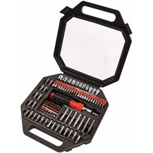 Set includes 77pc 25mm bits including Phillips, Slotted, Pozi, Torx, Square and Hex. 1pc 25mm bit adaptor. 6pc 50mm bits. 1pc 50mm bits adaptor. 1pc 60mm bits holder. 1pc ratchet handle. 11pc 1/4 drive sockets sizes: 4, 5, 5.5, 6, 7, 8, 9, 10, 11, 12 and 13mm. 3pc 25mm bits plastic holder. Supplied in blow moulded storage/carry case. Ideal for many household and D.I.Y. jobs.