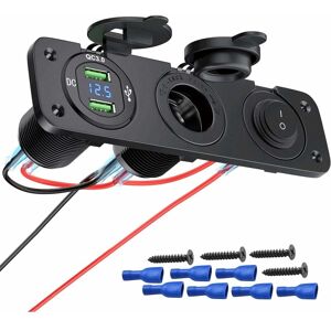 DIY 3 in 1 Design: This four hole panel includes 2 QC 3.0 USB charging sockets (output: DC 18W max) + 12V socket (output: DC 12V) + ON-OFF -Toggle switches, they are interchangeable. You can also replace each port with additional USB sockets or other suitable means. Two waterproof QC3.0 USB ports: The cigarette lighter socket has two 18W/3A USB ports QC3.0.bis up to 4x faster than conventional chargers. Universal for all 12V-24V cars, buses, RVs, ATVs, trucks, trailers, boats. Marine and more. Voltage display and safe driving: Digital voltmeter display. The real-time LED voltmeter can remind you whether the voltage is at a normal level to ensure safe driving. The blue light is perfect for nighttime use. Note: The voltage display is only visible when this socket is powered and the user has turned on the button. Flexible charging: 1 cigarette lighter is sufficient for multiple portable devices at the same time, such as GPS, dashboard, DVD player , FM transmitters and other small devices
