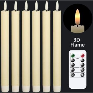 Packing List: This value pack includes 6 beautiful flickering flameless taper candles, a remote control with 10 different buttons, and a very easy-to-follow instruction manual. (English language not guaranteed). This set contains six flickering flameless candles (24.5 cm high x 2 cm diameter). Each candle is powered by 2 AAA batteries (not included). Realistic Taper Candles: These taper candles are made of real wax, a 3D wick, and a realistic flickering light that looks like a real wax candle. Dancing in the wind. The warm light creates a romantic atmosphere when used as a dinner, party, wedding, birthday, or Christmas decoration. Smart Control: In addition to the warm atmosphere, you can also control it intelligently. You will receive a 10-button remote control for all candles. You can set your candle to a 2/4/6/8 hour timer, adjust the brightness, or change the flicker mode. It's safe: - You can spend perfect evenings in your ambiance, especially with family and children. /pets,