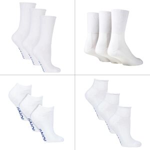 IOMI Diabetic Work Socks: For those who enjoy the comfort of IOMI diabetic socks and the robust of Workforce work socks, the creators of these brands have come up with these IOMI Diabetic Work Sock. This sock combines the great features of both brands in one. They have IOMIs easy-stretch, non-binding honeycomb top, which has been specially crafted to mould to the contours of the legs without causing pressure or constriction - which elasticated socks can create leading to circulatory problems. Along with a smooth toe seam, to avoid irritation of the toes. These socks also have a fully cushioned footbed, to keep feet protected during long hours at work on your feet. They are also thicker than regular diabetic socks on the foot, making them ideal for work. These socks are made of a high cotton blend, with polyester for durability, making them soft on the foot to avoid irritation and long-lasting as work socks should be. These socks are available in size 6-11 UK and in black. They are made of 53% Cotton, 46% Polyester and 1% Lycra Elastane. They are machine washable. Extra Product Details: - 3 pairs- 6-11 UK- Durable- Easy Stretch Honeycomb Top- Non-Binding Top- Smooth Toe Seam- Full Cushion Foot- Cotton Rich- 53% Cotton, 46% Polyester and 1% Lycra Elastane- Machine Washable Iomi Women's 3 Pack Extra Wide Loose Top Cushioned Cotton Diabetic Work Socks in Black Size: 4-7