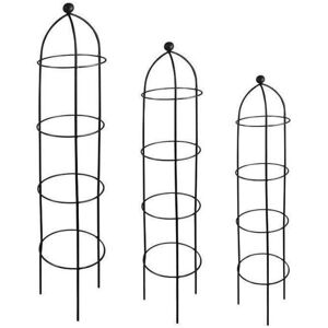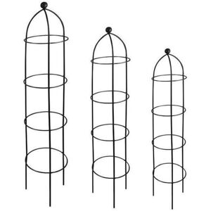 Give your climbers and trailing vegetables support whilst adding style to your garden with one (or three!) of our Growing Obelisks. These obelisks are handmade in our West Sussex factory and can be purchased individually or in a set of three. Each is a solid piece constructed out of sturdy steel, which can either be coated in a hard-wearing black plastic or left raw for a rusty finish. The Growing Obelisk trio stands proud at 3ft 5", 4ft 6", and 5ft 6". Each obelisk features four internal support rings to provide growing assistance to plants throughout the various stages of their natural life cycle. The strong and robust legs can easily be pushed into the ground for anchorage. The metal garden obelisk has a slender, streamlined frame and an elegant and understated domed top, with a decorative finial embellishment. In a small garden, they can be added to maximize your plant growing space. In a larger space, they can create independent areas of focus or attractive centrepieces. As the