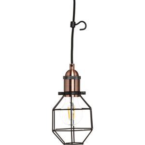 Make a statement in your home with the Beca Plug-In Cable Ceiling Pendant Light Kit in Black & Copper. Featuring a geometric cage design, this cable set provides a wide spread of practical illumination, ideal for a home office. Complete with an inline switch, this plug-in features wall hooks which makes this set ideal for renters. Product Type: Ceiling Pendant Light Bulbs Required: 1 (Not Included) Bulb Type: E27 Edison Screw Max Bulb Wattage: 42 Watt Max Bulb Voltage: 240 Volt Light Source: Incandescent Length: 520 cm approx. Diameter: 12 cm approx Shade Height: 15 cm approx. Shade Diameter: 12 cm approx. Material: Metal Colour: Black, Copper Technical Information Features a inline On/ Off Switch Adjustable Hook Placement Includes 6 Cable Clips