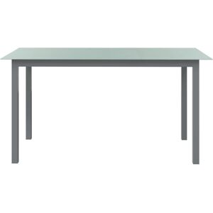 This garden table makes an excellent addition to your garden, balcony or patio with its simplistic yet stylish design. The aluminium frame makes the outdoor table strong and suitable for outdoor use. The glass tabletop is easy to clean with a damp cloth. The sturdy tabletop offers ample space for your dining accessories, utensils, food, etc. Note: In order to extend the life of your outdoor furniture, we recommend you to clean it regularly and do not leave it outdoors without protection unnecessarily.Clean: Use a mild soap solutionStoring: If possible, store in a cool, dry place indoors. If the product is stored outdoors, protect it with a waterproof cover. Wipe and dry the excess water or snow from flat surfaces after a rain or snowfall. Allow sufficient air circulation to avoid moisture-related damage. 17 Stories Colour: Light Grey, Size: 74cm H x 150cm W x 90cm D