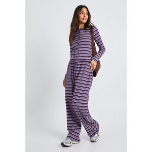 Ribbed fabric with all-over stripe pattern for a contemporary casual look Comfortable drawcord waistband for an adjustable fit Wide-leg silhouette offering effortless movement and style Soft stretch fabric blend for day-long comfort Coordinated top and bottom set perfect for mix-and-match styling These Stripe Rib Drawcord Trousers from Boohoo combine comfort with on-trend style for your casual wardrobe. The relaxed wide-leg design creates a flattering silhouette while the ribbed texture adds visual interest to the distinctive stripe pattern. Style them as shown with the matching long-sleeve top for a coordinated loungewear look, or break up the set for versatile styling options. Pair with trainers for daytime errands or casual meet-ups with friends. The drawcord waistband ensures a personalised fit that works with your body shape. These trousers are ideal for family gatherings, weekend brunches, or simply relaxing at home when you want to feel put-together without sacrificing comfort. The stretchy fabric moves with you throughout the day, making these an essential addition to your casual collection.
