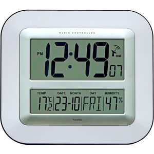 Date, Month and day of the week Display, Indoor Temperature and Humidity display Radio-controlled LCD wall clock, automatic time change for spring & autumn and automatic time checks Time self-set automatically, you never have to do anything, no backlight to disturb you at night Youshiko Colour: White