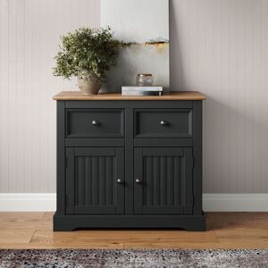The Mercers Furniture Country Charcoal Wax 2 Door 2 Drawer Sideboard is a stylish and functional piece that blends contemporary sophistication with rustic charm. Constructed from solid pine and finished with a sleek charcoal wax, this sideboard boasts a modern yet timeless aesthetic that enhances any room decor. This versatile sideboard features two spacious drawers and two cabinet doors, providing ample storage space for various household items such as tableware, linens, and decorative accessories. The doors and drawers are equipped with elegant round metal knobs, adding to the sideboard's refined look. Designed to be both practical and visually appealing, the sideboard's sturdy build and classic lines make it a perfect addition to dining rooms, living areas, or entryways. Whether you’re looking to complement existing furniture or introduce a striking focal point, the Mercers Furniture Country Charcoal Wax 2 Door 2 Drawer Sideboard brings a touch of elegance and functionality to your