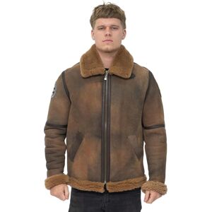 Experience the timeless allure of our Men's Sheepskin B3 Brown Leather Vintage Flying Aviator Jacket. Meticulously crafted from genuine double-faced sheepskin, this jacket exudes both rugged durability and luxurious comfort. The weatherproof distressed brown leather finish adds a touch of vintage appeal while ensuring protection from the elements. The shirt-style collar with a leather buckle strap offers versatile styling options, perfectly complementing the classic aviator look. The leather taping detail running along the panels adds an extra dimension of authenticity to the jacket's design. With embossed badges on each sleeve, this jacket showcases a true vintage charm that stands the test of time. • Genuine double-faced sheepskin for durability and comfort. • Weatherproof distressed brown leather finish for a vintage appeal. • Shirt-style collar with leather buckle strap for adjustable style. • Leather taping detail along the panels for an authentic flying jacket aesthetic. • Embossed badges on the sleeves add a touch of vintage charm. Embrace the spirit of adventure and style with our Men's Sheepskin B3 Brown Leather Vintage Flying Aviator Jacket—a timeless piece that combines functionality, ruggedness, and undeniable elegance. Genuine 100% Sheepskin Reversible Collar and Cuffs Two Pockets Comfort Fit