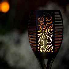 ?Dancing Flames Design light?The solar torch light consists of 96 LEDs, each LED flashes warm yellow lights, you seem to see a real flame flickering in the wind, making you feel romantic. There are 3 lighting modes: Flame, Light, Flash. It is perfect for your garden party, barbecue, camping, etc. ?Light sensor? The top-mounted solar panel can charge in the sun and automatically light up at night, which is very environmentally friendly. You can also cover the solar panel with your hand to switch to night mode. ?Long working time and energy and energy saving? Equipped with 2200mAh Li-ion battery, it can light up more than 10 hours after fully charged. (Working time will be shortened in winter) Warm light is always there for you and your family ?Waterproof Eternal Flame lights?IP65 waterproof and anti-knock sun outdoor solar lights with entrance protection, become more stable in bad weather of rain, wind and snow. ?Install Easy to install? You don't need any complicated wires, just place