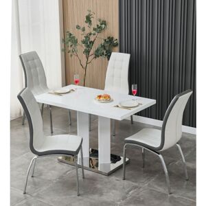 Feast your eyes on the magnificent 4-seater Meridian dining table. It features a stunning grey tempered 6 mm glass top with grey high gloss MDF edges that are bound to catch your eye. The MDF-built base with gleaming stainless-steel surfaces sits below two sturdy grey high gloss pedestals that are uniquely arranged to add to the contemporary finish of this piece. The Meridian dining table is an absolute head-turner that will enhance the aesthetic of your modern dining room. Meridian Dining Table Dimensions: 120 cm (L) x 70 cm (W) x 75 cm (H) Eye-catching, contemporary design Stunning grey high gloss dining table with grey glass top Grey tempered 6 mm glass tabletop Two sturdy grey high gloss pedestals MDF-built base with stainless-steel surfaces Comfortably seats up to 4 High-quality finish Simple assembly This table is perfectly complemented with our two-tone Vienna dining chairs. The two-tone Vienna dining chair emanates a sophisticated modernist aesthetic. This luxurious chair is