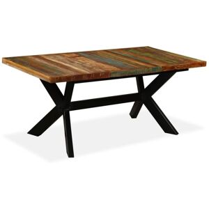This vintage-style wooden dining table will make a unique addition to your kitchen or dining room. Its solid wood construction makes it stable and sturdy. This table is made of solid reclaimed wood, which means that every piece of furniture is unique and slightly different from the next. Furniture