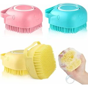 【Ergonomic Design】 our dog brush with a special non-slip handle gives you a comfortable grip when you take a shower for your dog, squeeze lightly and the shampoo can easily come out, this which saves more pet shampoo. 【Multifunction】 This short hair dog brush is designed for pets with short hair and medium, such as dogs, cats, puppies, kittens, ferrets, horses, rabbits, Ideal gift for pet lovers. 【Easy to Use and Clean】< br/> Simply open the cap on the top so you can clean the brush easily and quickly after washing your dog. 【Features】 Material : Silicone Product Dimensions: 8.4 x 8 x 5 cm 【Contents】 4 x Dog Brush(2 x Yellow, 1 x Pink , 1 x Green) 【Tips】 1. Avoid prolonged exposure to the sun. 2. After receiving the product, please first wash it with water, then place it in boiling water for 5 minutes for sterilization. 3. Do not pour corrosive chemical liquids. Dog Bath Brush , Set of 4 Soft Silicone Dog Bath Brushes with Shampoo Dispenser Pet Bath Brush for Dogs and Cats