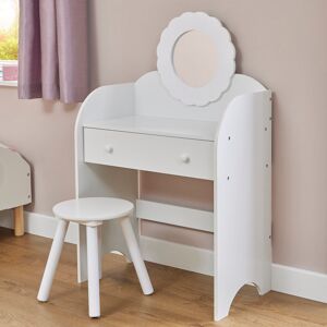 This white dressing table is the ideal piece for any child’s bedroom or playroom. This adorable dressing table comes with a child-safe circular mirror, a sturdy stool, and one spacious pull-out drawer for extra storage. The table has rounded edges for added safety. Liberty House Toys