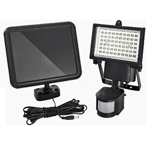 Solar spotlight IP44 with motion sensor and light sensor, solar wall spotlight, solar outdoor lamp, solar wall washer, security light Super bright white light thanks to 60 SMD LEDs - ON/ automatic OFF thanks to motion detector - range approx. 2 to 12 m - detection angle 180° - sensitivity and angle of inclination of the spotlight adjustable - power supply: including 1x Li-Ion battery - 1200 mAh / 3, 7 volts Motion sensor for automatic lighting in the dark - ideal for driveways, courtyards, carports and much more - super bright white daylight - independent of mains power supply - thanks to solar panel and rechargeable battery - motion detection up to 12 meters - adjustable light duration up to 120 seconds Scope of delivery: 1 x LED floodlight with 60 SMD LEDs in housing made of aluminum - with motion sensor and solar module - adjustable lighting duration: 5 - 120 seconds - with twilight sensor and motion sensor - 180° swivel - protection class IP44 splashproof - solar panel dimensions: