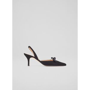 Slingbacks with a dressy, Parisian feel, our Beth heels are perfect for party season. Crafted in Spain from velvety-soft black suede, they have a pointed toe, a sweetheart panel of chic spot mesh and a ribbon bow, elasticated slingback straps and a 70mm stiletto heel. Wear them with the season's party dresses and sharp, sleek tailoring.