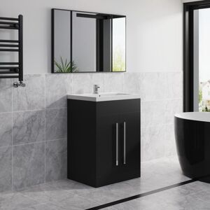 GENERAL DESCRIPTION This vanity unit features a stylish matt black finish and includes soft closing doors with chrome handles. The cabinet requires self-assembly, with easy-to-follow instructions provided. The basin is made from Polyglomerate, a durable composition of crushed stone and resin, and has a seamless solid surface top with a single tap hole and overflow. TECHNICAL SPECIFICATIONS Vanity Unit dimensions: 810 x 590 x 445mm (HxWxD) Basin Top dimensions: 40 x 590 x 450mm (HxWxD) Includes: 600mm Resin Basin Vanity Unit (Flat Pack) Excludes: Basin Tap and Waste