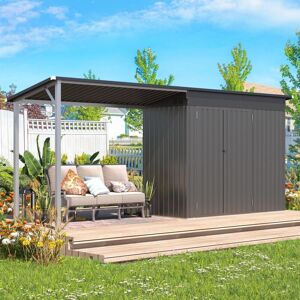 About this item 【Easy Installation】: We provide a user-friendly guide, detailed manual, and step-by-step video tutorials to make setup a breeze. Plus, our expert technical team is available for remote support whenever you need it. 【2-in-1 Storage】: This versatile 4x8 storage shed extends to include a 15 sq. ft. covered area. The lockable enclosed space is perfect for storing tools, while the gazebo-covered area is ideal for placing a grill, lawn mower, kids' bikes, or other frequently used items. 【7" Snow Load Capacity】: The hardtop attached gazebo has been tested to withstand 6 lbs/sq.ft of snow, ensuring reliable load-bearing even in harsh weather. Premium galvanized steel not only enhances the shed's durability but also reinforces stability for the metal pergola. 【Weather Protection】: Upgraded metal panels give the shed a wind resistance of up to 54 MPH. The galvanized coating ensures resistance to rust, oxidation, and moisture. With our outdoor storage solution, you can rely on