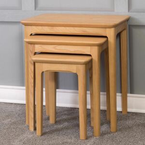 Solid Wood Ready Assembled Nest Of 3 Tables Made from solid ash wood with traditional dovetail joints and is delivered already assembled for your immediate enjoyment. Set of three nesting tables made from solid ash. Inspired by traditional Shaker styling with slightly tapered legs and a contoured top. The compact design means you can always find room for this beautiful nest of 3 tables Overall width : 50cm x Overall depth : 36cm x Overall height : 51cm.