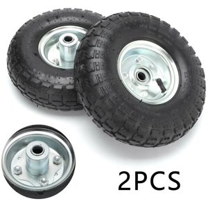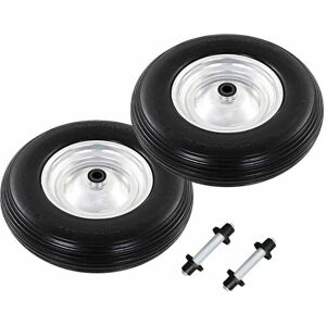 These puncture resistant sack truck spare wheels are ideal for heavy-duty use when moving loads with your sack trucks, hand trucks, trolleys, carts, dollies, wheelbarrows, etc., even on uneven grounds. The pneumatic tyres are made of durable, abrasion-resistant rubber and have a special tread design that provides added grip at higher speeds. The wheel rims are made of sturdy metal. The spare trolley wheels have a universal size and can be easily installed to your sack trucks, trolleys, etc. Delivery includes 2 wheels. Colour: Black and silver Material: Pneumatic rubber tyre and metal wheel rim Dimensions: 260 x 83 mm (Diameter x W) Tyre size: 4.10/3.50-4 Ball bearing diameter: 20 mm Load capacity (each): 100 kg Inside diameter of axle: 20 mm Outside diameter of axle: 35 mm Axle high (two sides ): 34.6mm+2.0mm Easy to install Delivery includes 2 wheels Note: Not for highway use SKU: 142975 EU responsible party Haba Trading B.V. Mary Kingsleystraat 1 5928SK Venlo The Netherlands