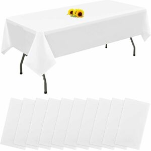 【Disposable tablecloth set】: The package includes 10 white plastic tablecloths. Tablecloth measures 54 x 108, rectangular plastic tablecloths will cover any table up to 8 feet, add elegance to your party. 【Premium Material】: Disposable white tablecloth, made of high quality PEVA plastic, highly recyclable and odorless alternative, waterproof, fade resistant, wrinkle resistant, protects your tables from scratches, spills and spills. 【Wide applications】: disposable tablecloth for more occasions for parties, weddings, birthdays, receptions, anniversaries, Thanksgiving, Christmas and many themed activities, adds atmosphere 【Easy to clean】: after the party, you can directly wrap used items with disposable tablecloths to clean up party garbage more easily and quickly save time and energy. 【Excellent Service】Fast shipping, we promise our plastic tablecloth is high quality, but if you don't like it, don't worry and let us know. we will be responsible for those low probability misfortune