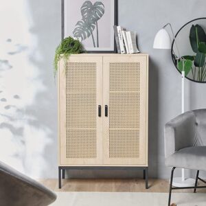 Bohemian textures, Scandi tones, and industrial accents: introduce style into your hallway with the VonHaus storage cabinet. Crafted from light wood effect MDF, the rattan-fronted doors keep contents contained in rustic style, whilst the black metal frame and handles add a bold finishing touch. Keep all your spare bits and bobs out of sight whilst presenting a sleek aesthetic with this living room cabinet, marrying form and function. Concealed by two cupboard doors, the three internal shelves offer ample room for books, blankets, and barware. At 38cm deep, this tall sideboard cabinet keeps your space in order whilst remaining unobtrusive in your hallway, living room, or dining room. Browse the Lena range today to weave that boho touch throughout your home; get organised in style. 17 Stories