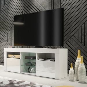 Elegant 145cm TV Unit by Mex Furniture LTD Add a modern and stylish touch to your home or office with this sleek TV unit, featuring a matt body and gloss doors for a sophisticated, contemporary look. This unit is crafted for durability and offers spacious storage to help keep your space organized. It includes two storage cabinets, an entertainment center, and four glass shelves, providing ample room for media equipment, decor, and more. The TV unit is designed to support TVs up to 50kg and comes flat-packed for convenient assembly. Additional Information: This TV cabinet features a high gloss front with a matt body and will be shipped in two separate flat packages, which may arrive at different times. Installation instructions are included for easy setup. Please contact us with any questions. Specifications: Material: Wood combination Dimensions (W x H x D): Approx. 145 x 53 x 35 cm Weight: 34.5 kg 17 Stories Colour: Medium Wood/White