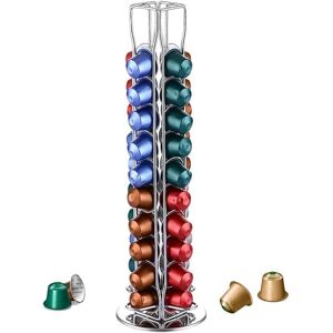About this item HOLDS 40 NESPRESSO CAPSULES ORIGINAL SIZE - The Nespresso capsule holder is a rotating capsule holder designed to hold 40 Nespresso original size coffee capsules. The five sections hold up to 10 capsules each. Coffee capsules are not included in the box. SMOOTH AND QUIET SPINNING - The coffee holder rotates smoothly and quietly in a 360-degree motion. Simply load the capsules into the top of each section. Dispense the coffee capsules or pods from the bottom of the grid, your favorite flavor always at hand. DIMENSIONS: 11.5 x 11.5 x 39 cm (4.52 x 4.52 x 15.35 inches), which will not take up too much space.