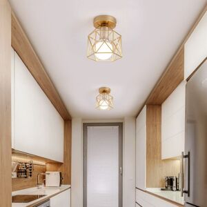 Description: The retro wrought iron lampshade, exquisite industrial style, generous design and simple lines give people a real pleasure. Unique shape, create a comfortable environment, increase perfect family happiness, high quality metal frame, sturdy and durable.General use places: bedroom, living room, kitchen, dining room, corridor, staircase, bathroom, office, shop, etc. Functions: 1. Strong and durable, environmentally friendly and safe. 2. Application: bedroom, living room, bar, dining room, etc. 3.Easy to install Specifications: 1. Color:Gold 2.Bulb base: E27 3. Power: 60W (maximum) 4.Voltage: 111V - 240V (both included) 5. Size: 10cm X 16cm X 14cm 6.With or without bulbs: without bulbs 7. Light source type: LED / incandescent lamp / energy saving lamp (bulb not included) The package includes: 2 X ceiling lights (without bulb) Note: The product does not contain light bulbs. Attention: 1. Manual measurement, due to different measurement methods and measurement tools, 1-2cm
