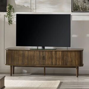 Make a statement in your living space with the Lorton Media Unit, combining both style and functionality. Crafted in a rich dark oak effect with striking slatted sliding tambour doors. Inside, you'll find ample storage with six shelves and additional smaller side shelves—ideal for organizing CDs, DVDs, game boxes, and displaying decorative pieces. The two cut-out handles and four sleek Nordic tapered legs add a modern touch, elevating the look of any room. Whether you're tidying up or showcasing your favorite items, this versatile piece offers the perfect blend of design and practicality. Simple assembly required to have it functional and ready quickly. Corrigan Studio