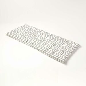 Brand Homescapes Size Available Two seater (108 x 42 x 5 cm) Colour Grey Cover Material 100% Cotton Filling Polyester Care Instructions Machine Washable at 40°C. When not in use keep out of direct sunlight and rain Pack Includes 1 Bench pad Pattern Striped Grey garden bench cushion, grey and white thin stripe 100% cotton seat pad with decorative tufted design, 2 and 3 seater extra-long indoor and outdoor cushions. Grey Seat Cushion Comfortable and generously filled bench seat cushions for garden benches, sun loungers and patio furniture. Add comfort to you outdoor seating area and garden with Homescapes' 2 and 3 seater cushions, filled with a supportive and durable super microfibre. Woven from soft 100% cotton, bench seat cushions feature a tufted design. Extra-Long Cushion Add colour and style to your home or garden, these on-trend grey and white stripe cushions will complement all décor colours and styles and will add comfort to your wooden or metal furniture. A versatile cushion,