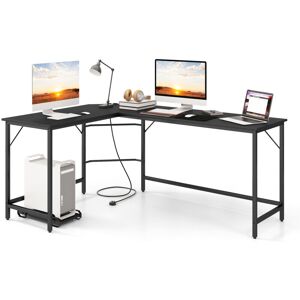 Wide L-shaped desktop frees you form narrow working environment L-shaped design makes full use of your limited home office space 2 standard plug outlets, 1 USB port & 1 Type-C port for easy and fast charging Bonus CPU stand makes it easy to store & move host 200 cm power cord adds convenience when working or playing games Heavy-duty metal tubes provide enhanced support Sturdy triangular structure prevents wobbling Equipped with adjustable foot pads for higher stability Perfect working spot for study room, bedroom and office Can be used for working, studying, writing and playing games, etc Need to charge but the nearest outlet is far away? Looking for a versatile computer workstation? This L-shaped desk with power outlet deserves a try. Whether you need a spot to study, game or just finish important work, the corner computer desk will fulfill your requirements. Wide desktop also provides ample storage space for your office supplies. More, 2 outlets, 1 USB port and 1 Type-C port are
