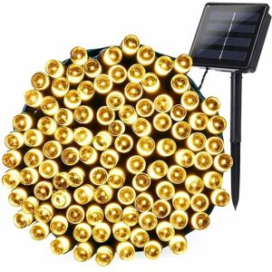 String Lights with Sensor LightIntelligent and humanization design - Auto switch, Auto on at night / Auto off at sunrise, Two buttons, one of them is mode switch , another is the On/Off power switch button. 8 modes selection solar string light 2 control buttons: ?ON/OFF? and ?MODE? button, press the ?MODE? to choose from 8 modes, flashing firefly, wave, fade, chasing/flash, slow flashing, continuous flashing and lighting, choose the light effect you like to create a comfortable and warm atmosphere for you. WaterproofIP44 completely waterproof, don't worry about rain and snow, solar lights can work perfectly in bad weather, create a romantic and fantastic atmosphere in rainy or snowy night, is the choice perfect for outdoor decoration. Energy saving and environmental protectionThe string lights use solar energy, built-in 1200Amh high capacity battery, automatic charging during the day, automatic lighting at night , energy saving and environmental protection, Zero electricity bill all