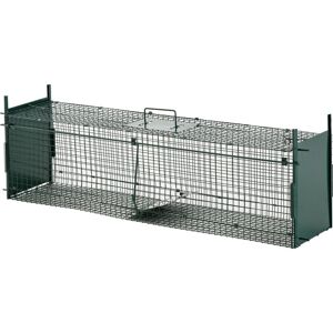 Introducing the PawHut animal trap – a two-door wonder designed for capturing multiple small animals. Its sensitive trigger ensures efficient pray capture. With a top handle for easy transportation, its discreet dark green colour helps confuse wildlife. A humane and efficient way of trapping pests, it's a versatile solution for a variety of needs. Specifications: ● Colour: Dark green ● Material: Metal ● Overall dimensions: 28H x 100L x 25Wcm. Dimension of entrance: 21H x 23Wcm. Thickness of wire: Ø1.8mm. Dimension of wire mesh: 1.9L x 1.9Wcm. Thickness of door panel: 1mm ● Item label: AB0-014 Features: ● Top handle for convenient transport ● Strong material keeps animals inside, so they cannot escape ● Can be used indoors and outdoors ● Highly sensitive trigger rod, making catching more easy ● A long design makes it possible to capture multiple animals at once ● It doesn't harm animals when inside ● A dark green colour blends well with outdoors ● The setting method is simple and easy