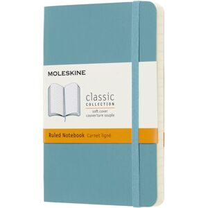Moleskine's classic pocket not with an arresting reef blue cover. This not has a soft cover with themed graphics and details, roundedcorners and elastic closure.It includes a sheet of themed stickers, ribbonbookmark, expandable inner pocket in cardboard and cloth with themedendpapers.Pocket sized 14 x 9 cm, with ruled pages.