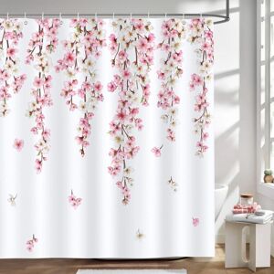 Made of high quality polyester fabric, waterproof, mildew proof, machine washable. Cherry Blossom Design: With this vibrant and inviting shower curtain, the delicate pink and white cherry blossoms are arranged in a way that is both soothing and refreshing, creating a springtime joy that will help you relax after a long day. Size: 180 x 180 cm (72 x 72 Inches), suitable for most families' bathroom or bathtub. Easy to Install: The shower curtain with 12 plastic curtain hooks and 12 reinforced metal grommets, easy to install and slide. Care Instructions: Easy to clean at 30°C in the washing machine, hand wash, do not bleach, do not dry.