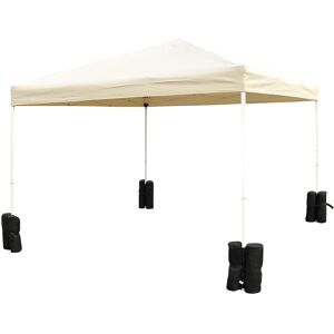 GENERAL DESCRIPTION This set of four weight anchors is essential for any canopy, gazebo, or tent. They help secure your shelter and prevent it from flying away. Simply fill the foot pads with sand or water for stability. TECHNICAL SPECIFICATIONS Colour: White Material: PE Plastic Water Filled Weight: 19.8 lbs. per piece Top Size: Φ22cm Bottom Size: Φ24cm Height: 25cm Net Weight: 2.7 kg Gross Weight: 3.6 kg Custom Label: 840-046 FEATURES Lightweight material Easy to transport and fill with sand or water Knob on each side for securing Fits 20 x 20mm and 30 x 30mm poles Comes in a set of 4