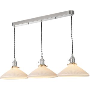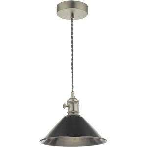 Dar Lighting Hadano is a small single ceiling pendant light featuring a vintage looking dimpled glass shade and Antique Chrome detail. The Hadano fitting is suspended on a twisted black braided cable, and it is designed for a small space or to highlight a particular area of your room, such as above a side table. This light would look great in a group of 2 or three above a kitchen island or dinning table. FEATURES: * Ceiling pendant light * Dimpled glass shade * Antique Chrome finish * Requires 1 lamp * Dimmable with suitable lamp / dimmer switch * Earthed * Height adjustable prior to installation SIZE: * Drop: 31 -127 cm * Diameter: 15 cm LAMP: * Requires 1 x SES LED Golf Ball or Candle Lamp - NOT INCLUDED