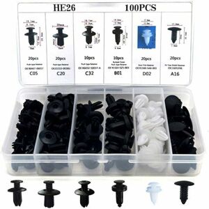 High applicability: This product is suitable for Peugeot, Citroen, Renault, Ford, Chrysler, Honda, Toyota, Mazda, Suzuki and other models. But not only for these cars, it is also a useful kit if the size and shape meet your needs. Multiple uses: Widely used in decorative panels, door panels, door fasteners, hoods, fenders, bumpers, etc. Suitable for household appliances, automobiles, household appliances, household appliances. The genius of plastic: The rivet kit eliminates the need for screws in automotive accessories, saving you time, effort and money. Our products are available in a variety of sizes - perfect for DIY enthusiasts and your pleasure. HIGH QUALITY: The car rivets are made of high-quality vibration-resistant plastic. They will not crack or crack. Color: Black, White Plastic Rivet Clip: Material: Nylon Plastic (strong and durable, anti-vibration, not easy to break.) The package contains plastic rivet clips: C05----20pcs. C20----20pcs. C32----10pcs. B01----10pcs.