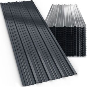 Sustainable, weatherproof and individually usable! Multifunctional: The Gardebruk® roof sheets in a practical pack of 14 are perfect for your new project and ideal for roofs or as wall cladding for carports, garden sheds, halls and tool sheds. High-quality, weatherproof material: The unperforated profile sheets have a high load-bearing capacity. The grooves in the longitudinal joint prevent water from penetrating between the individual panels and collecting there. Thanks to the galvanised metal, the trapezoidal sheets are also rust-resistant and thus offer optimal protection against rain and other weather influences. Stackable: The corrugated sheet can not only be used to cover a roof, but can also be used as a wall for tool sheds or carports. The profile sheets can be stacked to save space. The 14 galvanised roof panels are 110 cm high and 46 cm wide. This gives you an area of 7 m². You can vary individually, depending on the overall size you need. The thickness of the sheets is 0.25
