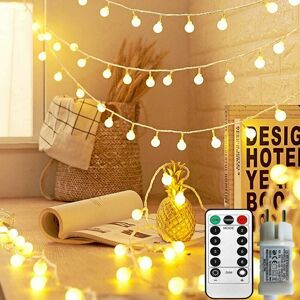 Waterproof Battery Operated String Lights: This led string light is powered by 3 AA batteries (necessary but not included, please buy batteries yourself). The waterproof battery box design allows the string lights to be used for indoor and outdoor decoration. 8 modes with remote control: There are 8 modes of these small LED lights: Combination/wave/sequential/slo glo/flash/slow fade/twinkle/steady, you can control the lights with the remote control, or press the button on the battery box can also change the 8 modes of this string light. Security and timer function: These battery operated twinkle lights are very safe to touch for children, thanks to energy saving technology, the string lights will not overheat. The timer function can set the lights to work automatically. (With 6 hours on, 18 hours off) Long life warm white pendant lights: Thanks to the protection of the PVC tube, the strings will have a longer life. Warm white lighting passes through the white globe to produce a soft